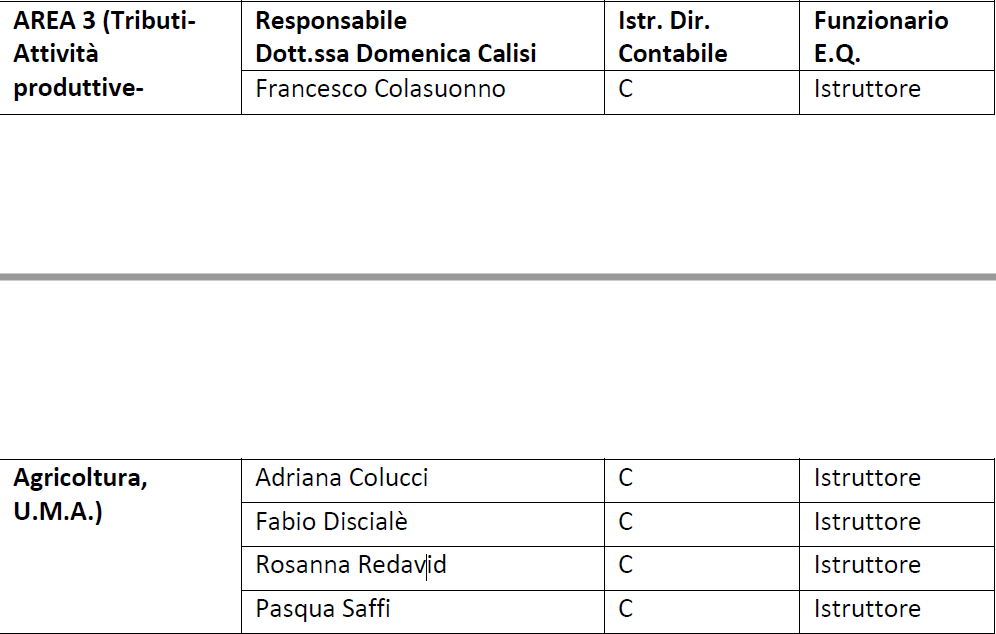 Organigramma Area 3 (Tributi, Attività produttive, Agricoltura, U.M.A.)