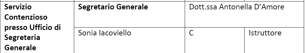 | Oggetto | Organigramma Servizio Contenzioso presso Ufficio di Segreteria Generale |