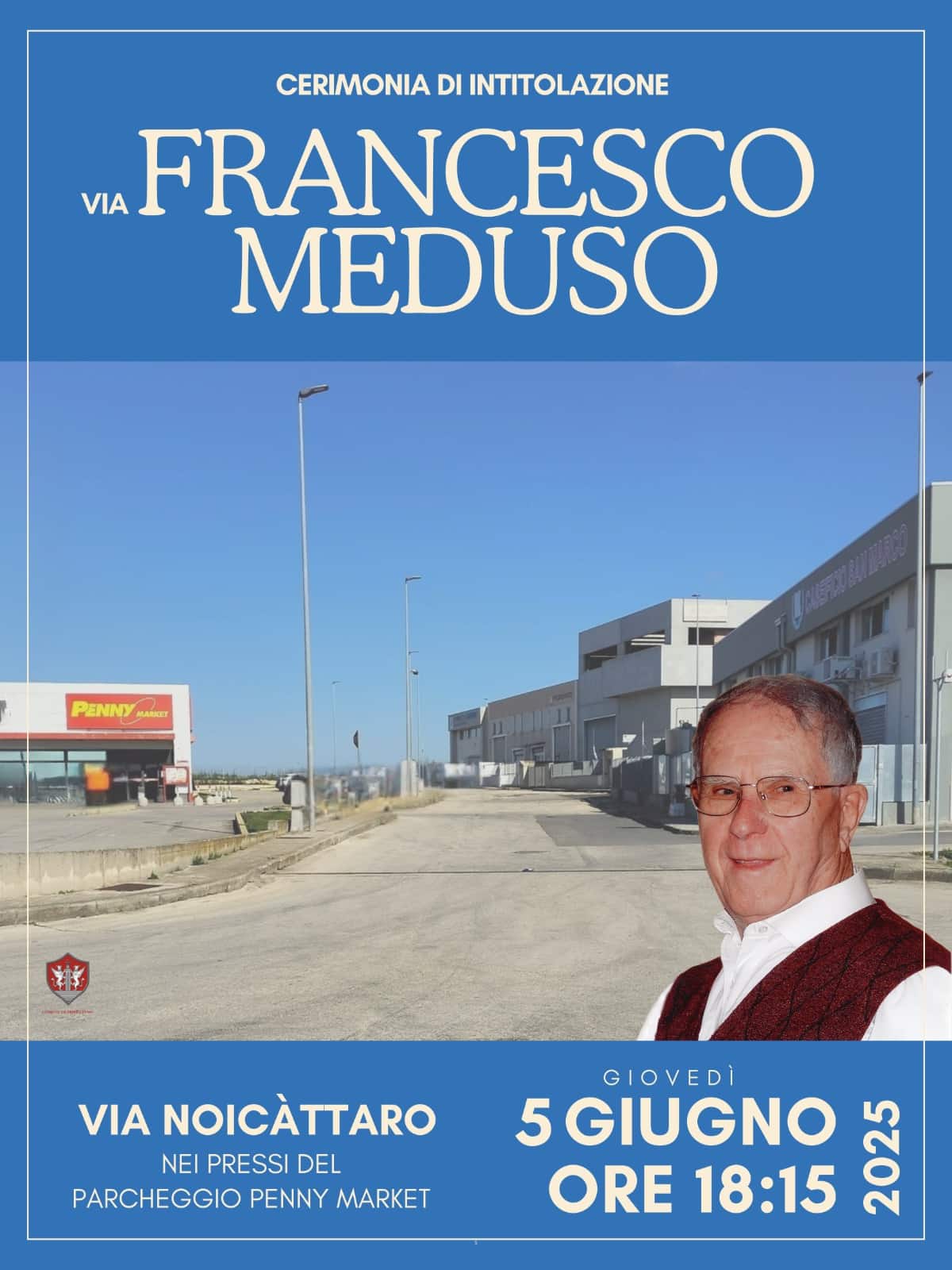 Si terrà giovedì 5 giugno 2025, a partire dalle ore 18.15, la cerimonia di intitolazione di via Francesco Meduso, artigiano marmista rutiglianese scomparso nel 2011.